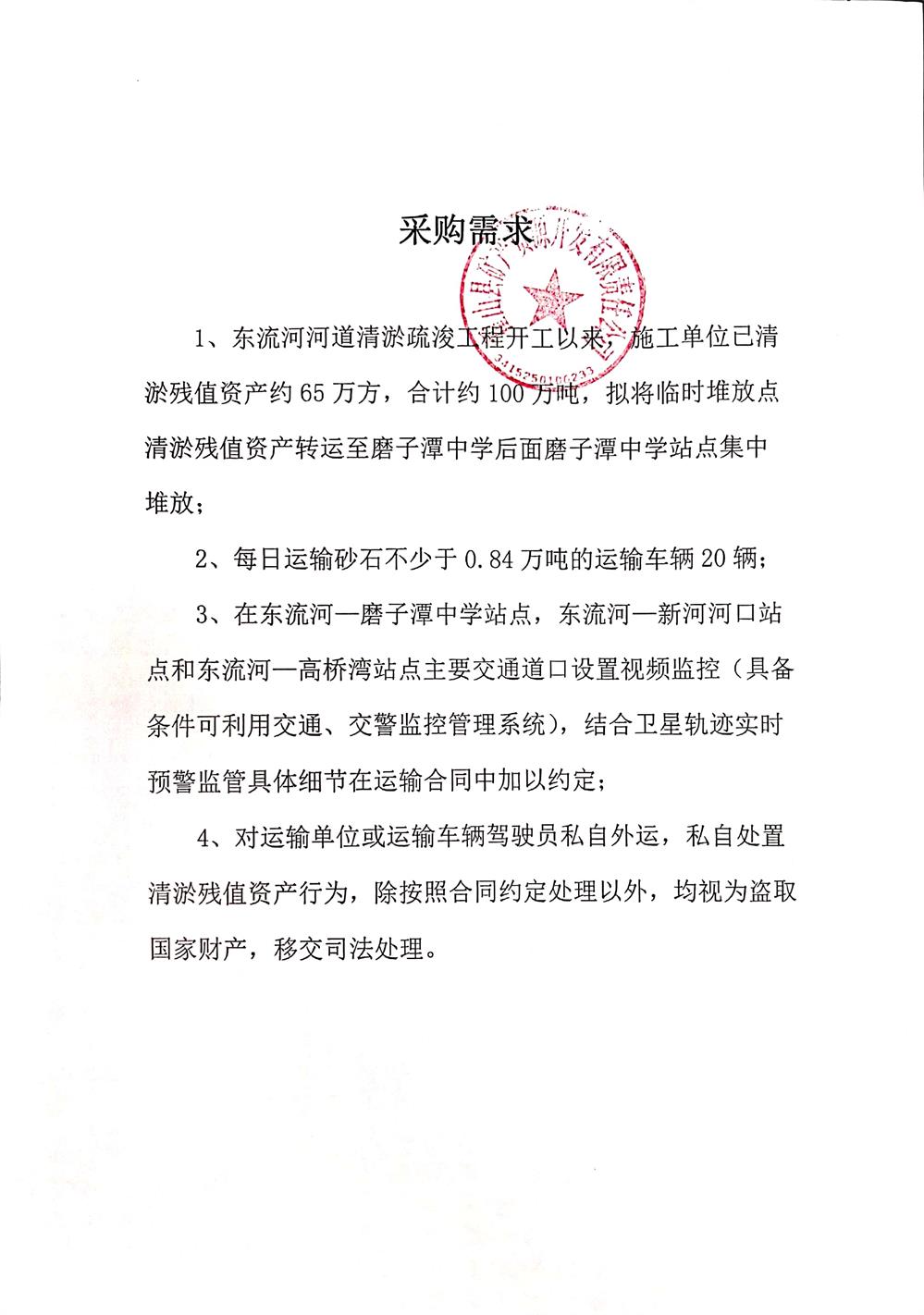 三、采購項(xiàng)目名稱:東流河河道清淤疏浚殘值資產(chǎn)運(yùn)輸勞務(wù)服務(wù)項(xiàng)目